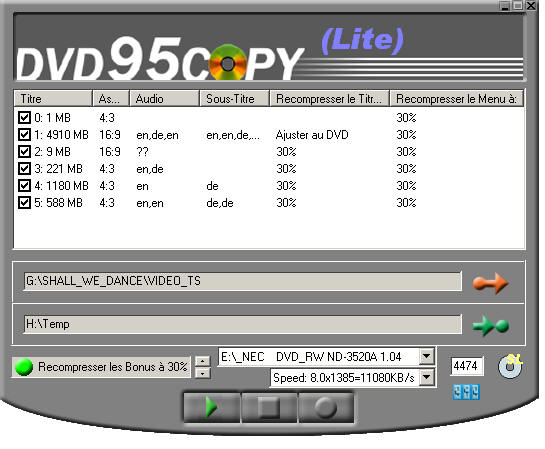 Ci-dessous quelques captures d'écran de Dvd95Copy.