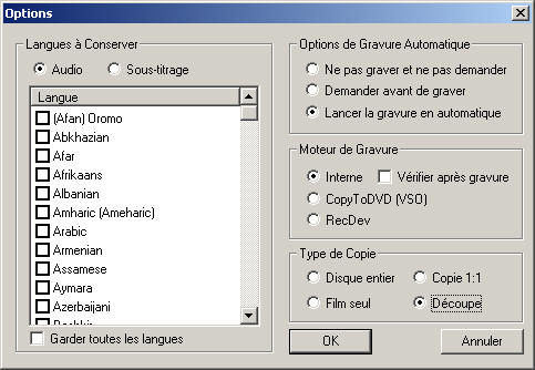 pour démarrer le découpage de votre DVD.