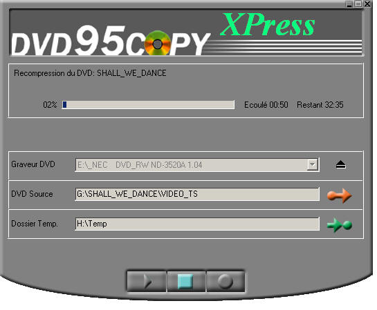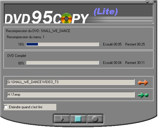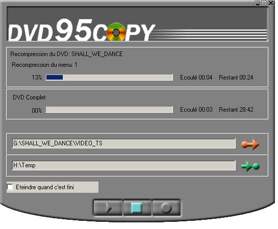 Ci-dessous quelques captures d'écran de Dvd95Copy.